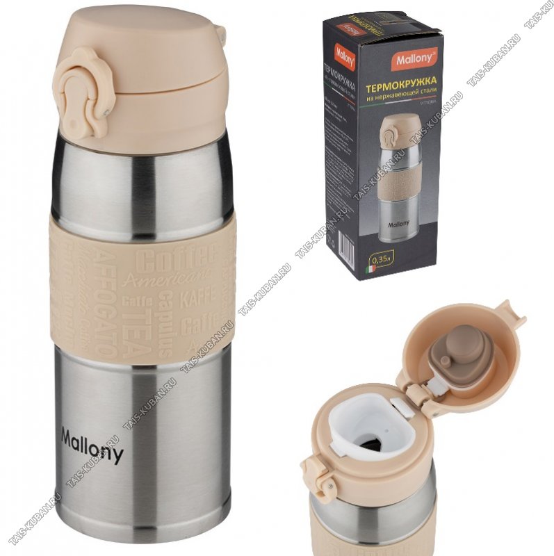 Термокружка (нерж) 0,35л "Mallony/Vittoria" серебр/бежев.силикон.встав.и крышка,крышк-поилка на защелк,п/у (24)