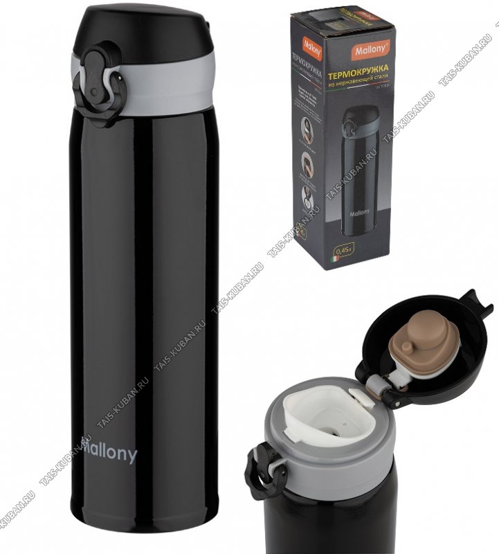 Термокружка (нерж) 0,35л "Mallony/Vittoria" чёрн.глянец,крышк-поилка на защелк,п/у (24)