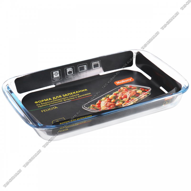 Форма д/запекания, прямоуг, с ручк. 3л б/крыш (39х23 h5см)