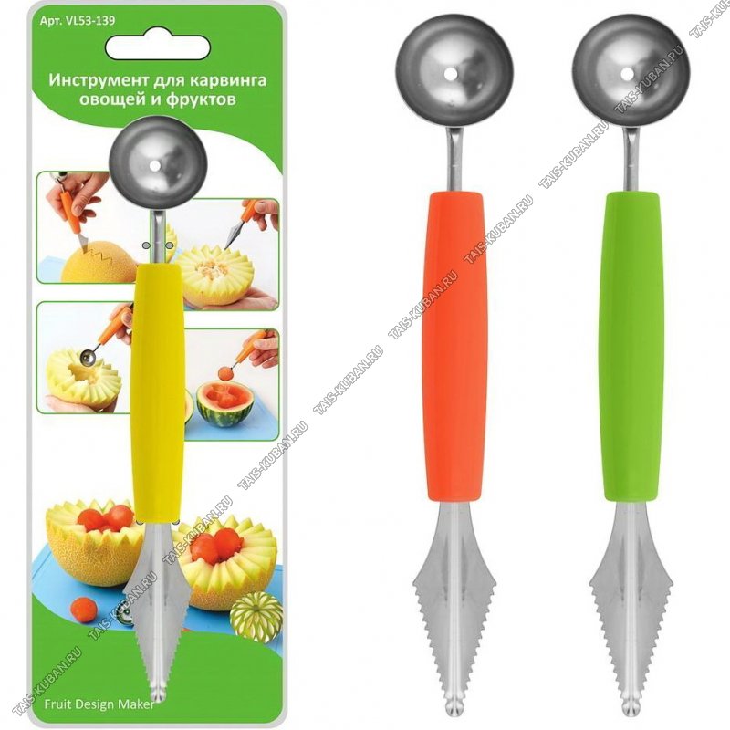 Декоратор д/овощей и фруктов 2-х сторон (шарики,нож резной) сталь, пластик (12)