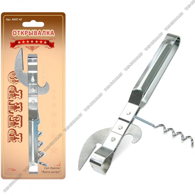 Ретро Открывалка д/консервов L9,5см, винт Ретро Открывалка д/консервов L9,5см, винт "бабочка",нерж, блистер (12)
