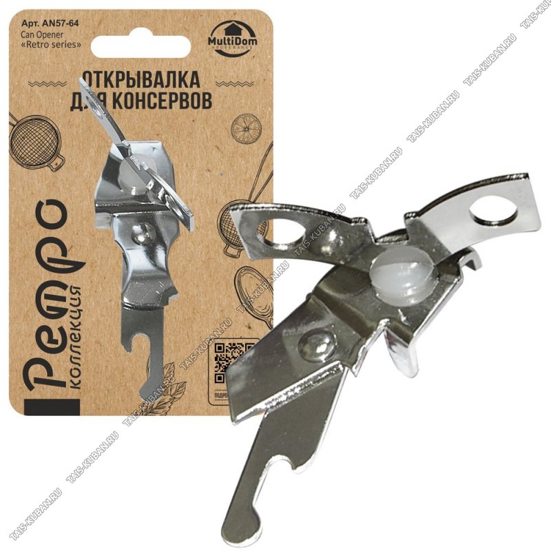Ретро Открывалка д/консервов L9,5см, винт "бабочка",нерж, блистер (12)