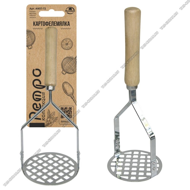 Ретро Картофелемялка L27см Ретро Картофелемялка L27см "зиг-заг",нерж+дерев.ручк (12)
