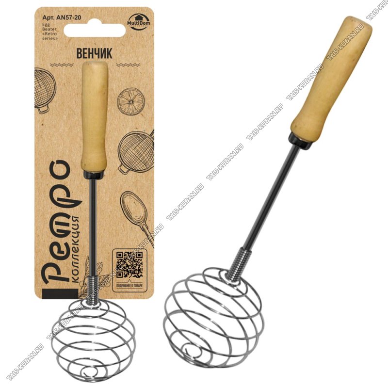 Ретро Венчик д/взбивания L27см "шар" нерж+дерев.руч (12)