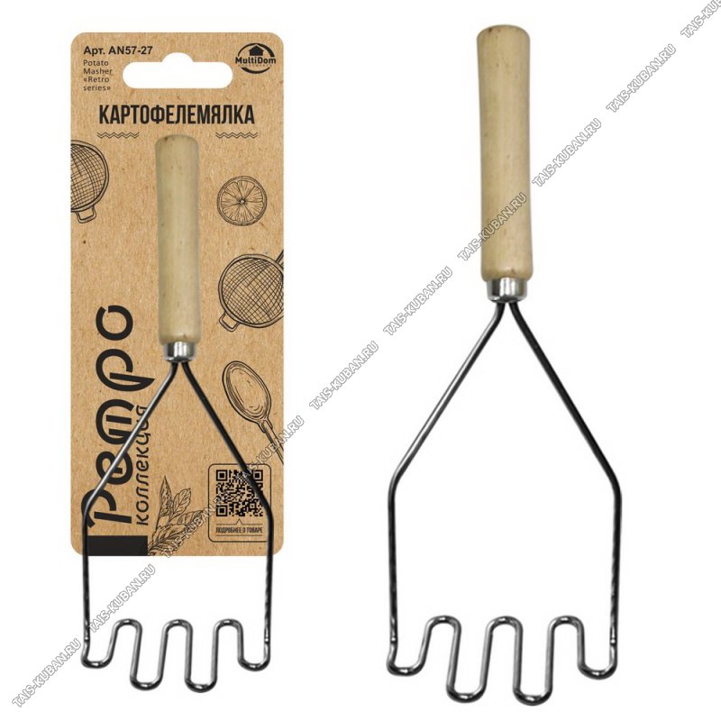 Ретро Картофелемялка L27см "зиг-заг",нерж+дерев.ручк (12)