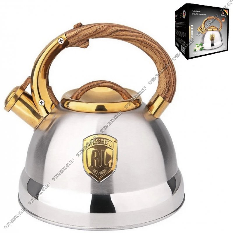 Чайник нерж 3,0л индукц.капсул.дно,ручка металл золото/бакел."дерево/soft-touch" c кнопк.д/открыван,п/у (6)
