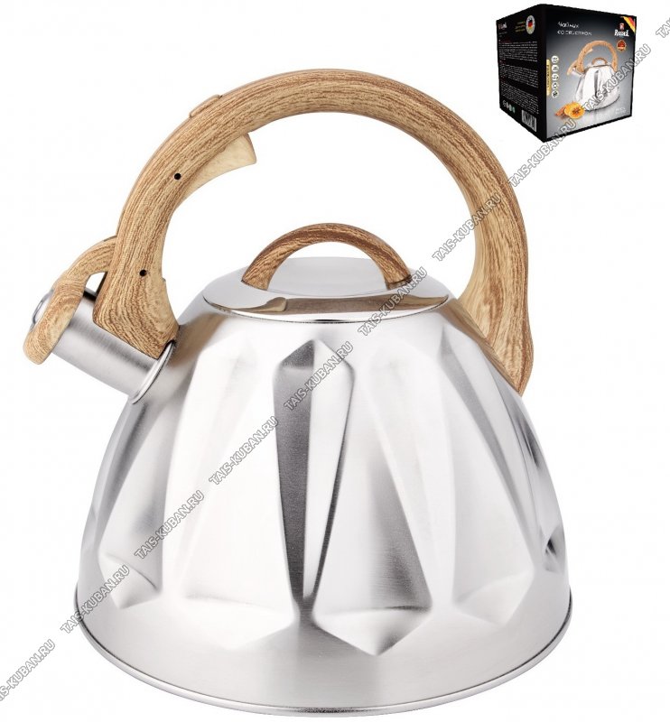 Чайник нерж 3,0л индукц.капсул.дно,рельеф."грани",ручка бакел."дерево/soft-touch" c кнопк.д/открыван,матов,п/у (6)
