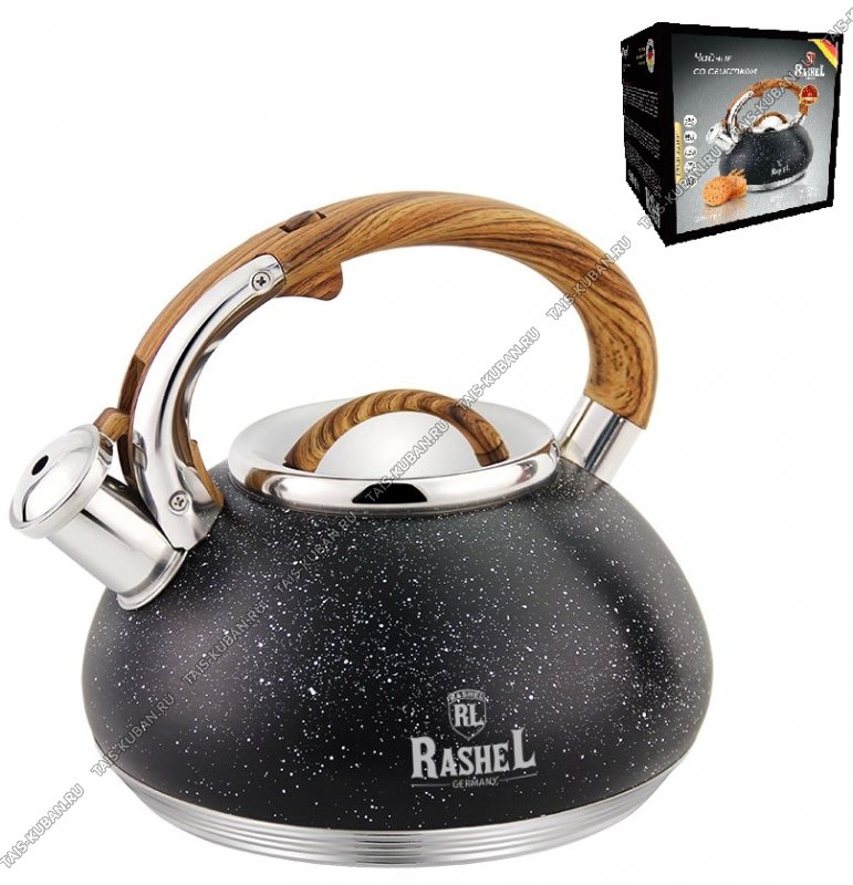 Чайник нерж 3,0л "гранит" чёрн,индукц.капсул.дно,ручка металл/бакел."дерево/soft-touch" c кнопк.д/открыван,матов,п/у (6)