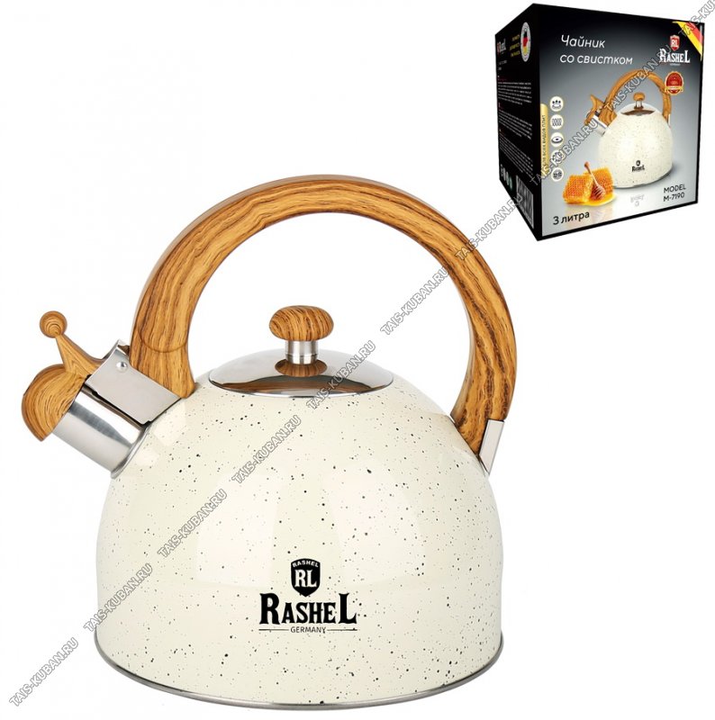 Чайник нерж 3,0л "гранит" кремов,индукц.капсул.дно,ручка бакел."дерево/soft-touch",глянец,п/у (6)