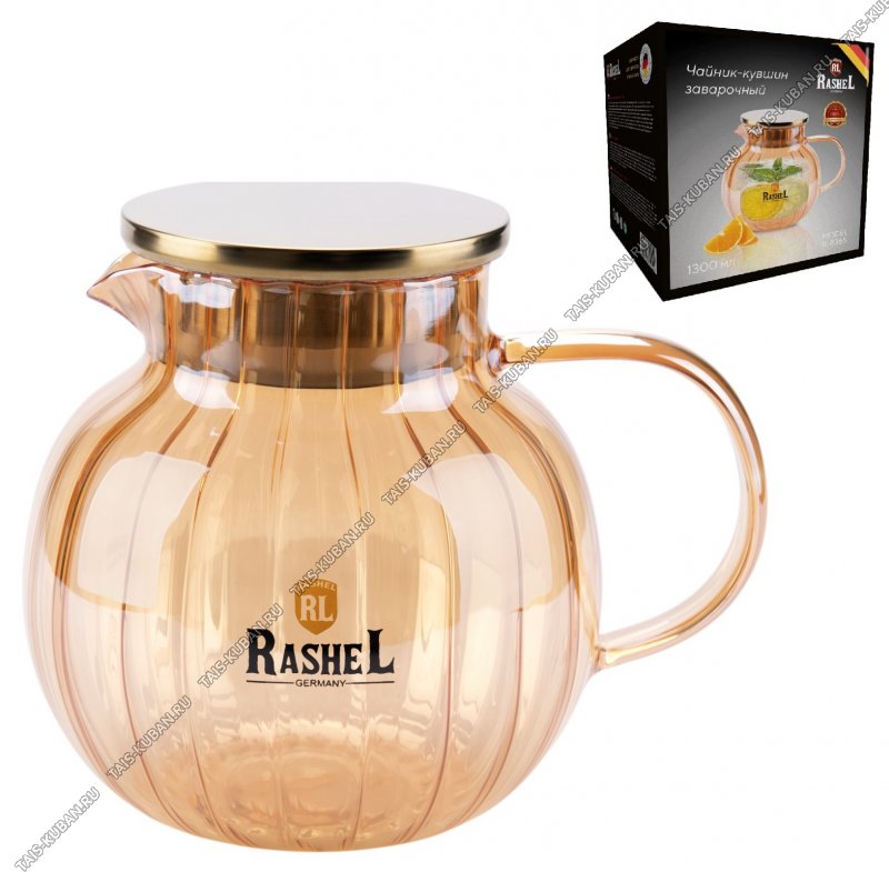 Чайник заварочн (стекло) "Кувшин/Янтарный" 1,3л нерж крышка,п/у (12)