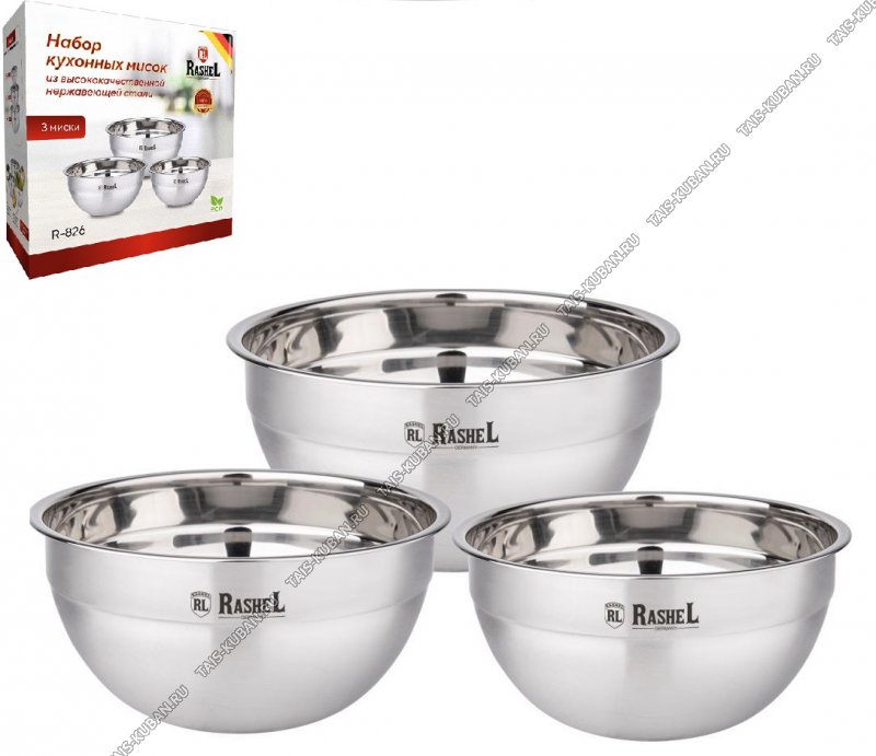 Миска (нержавеющая сталь) набор 3шт (2,0/3,3/5,2л d18/22/26см) (4)