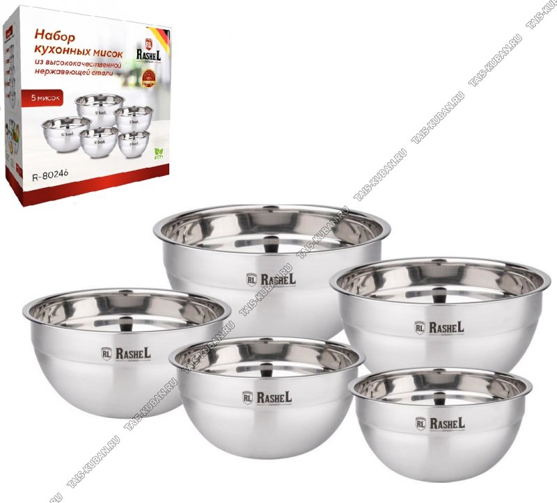 Миска (нержавеющая сталь) набор 5шт (2,0/2,6/3,3/4,3/5,2л d18/20/22/24/26см) (4)