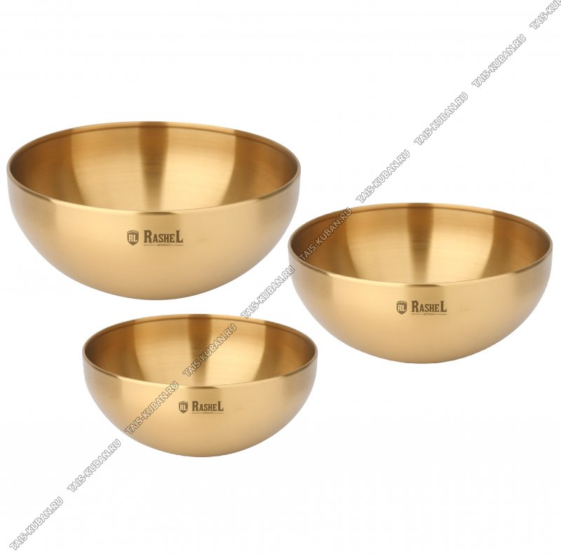 Миска (нержавеющая сталь) набор 3шт "Gold" (0,8/1,4/1,8л d15/18/20см) (12)