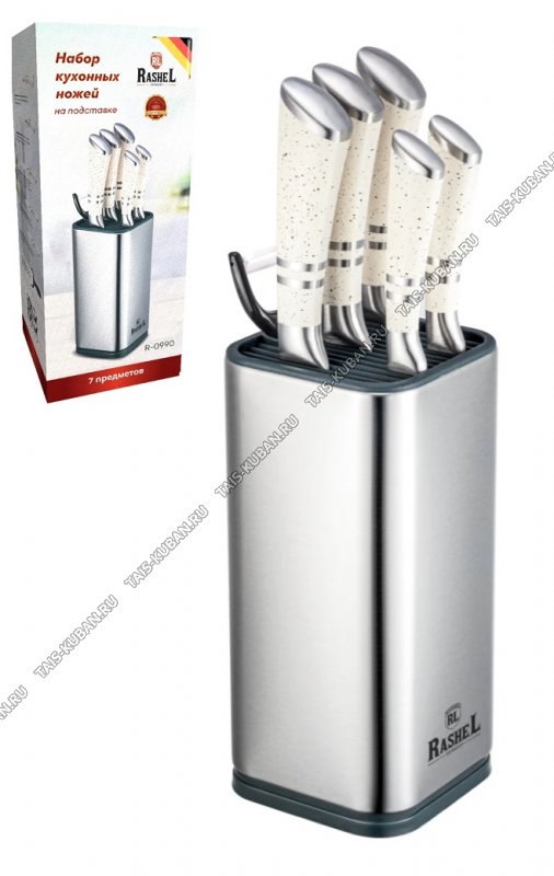 (разделочный 20,5см/поварской 20,5см/д/хлеба 20,5см/универсальный 13см/д/овощей 6см+овощечистка поперечная с керамическим лезвием),нержавеющее лезвие 18/10,ручки "гранит бежевый",подарочная упаковка,Rashel