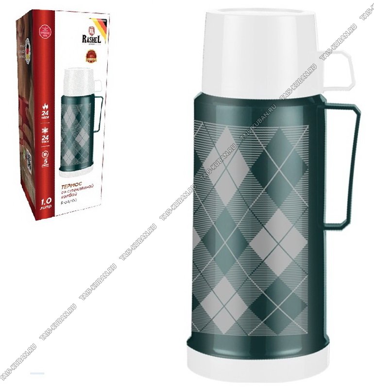 Термос (стеклянная колба) "Клетка" 1,0л,темно-зеленый/белый (12)