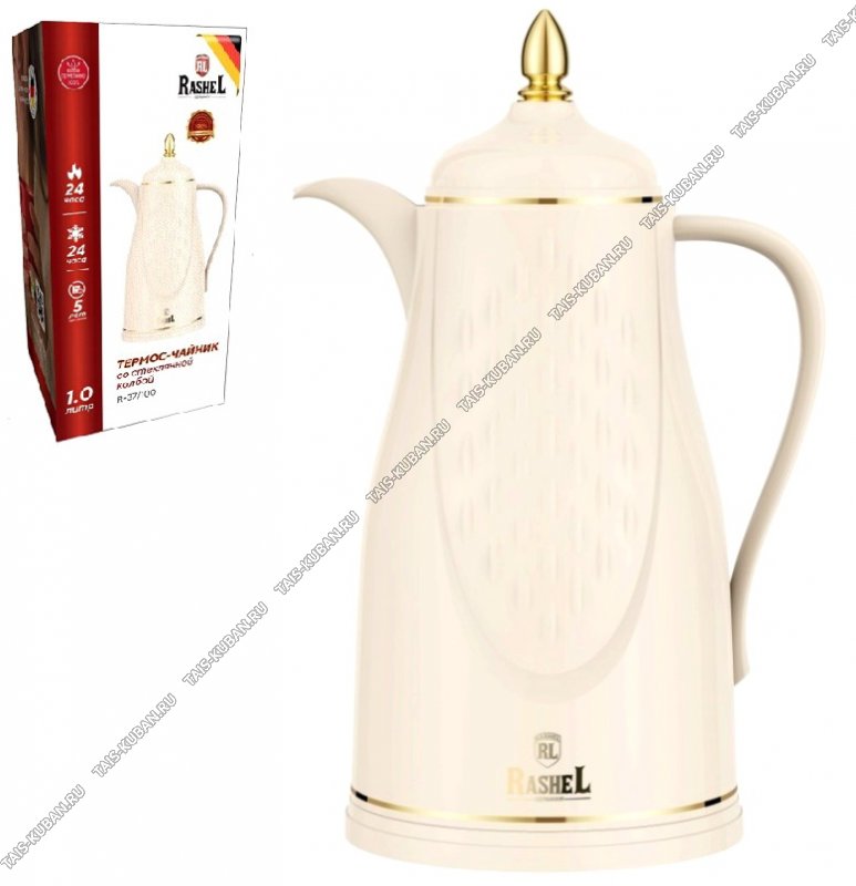 Термос-кувшин (стеклянная колба) Термос-кувшин (стеклянная колба) "Винтаж" 1,0л,белый/золотой (12)