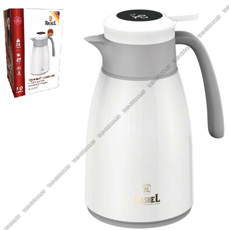 Термос-кувшин (стеклянная колба) "Комфорт" 1,0л с датчиком t,белый/серый (12)