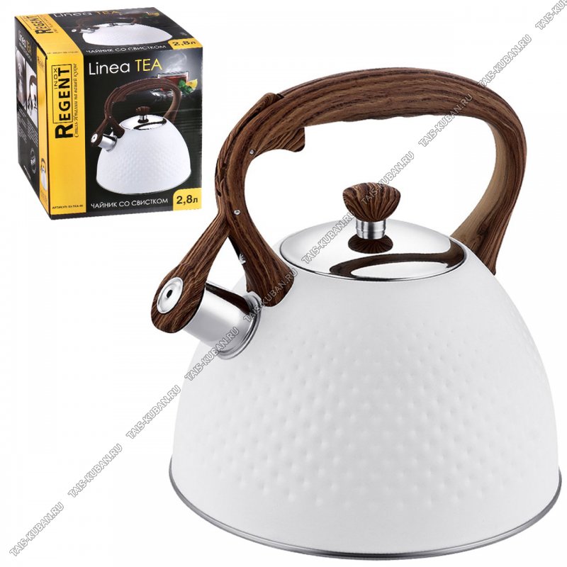 Чайник нерж 2,8л белый,свист,индукц.капсул.дно,рельефн."точки",ручка бакел."дерево/soft-touch" с кнопк.д/открыван,матов,п/у (6)