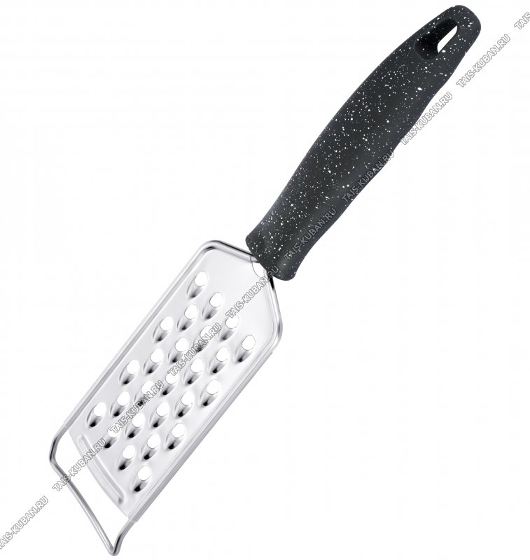 Терка 1-но сторонняя ручная (крупная) 26х5,5см,нержавебщая сталь,эргономичная ручка soft-touch черный с бело-золотым крапом (12)