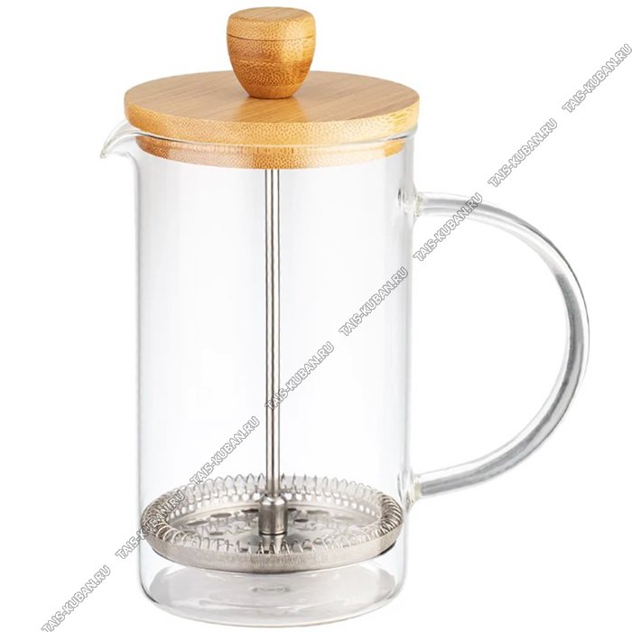 Френч-пресс (стекло) 0,6л "Bamboo" нержавеющий поршень,бамбуковая крышка,подарочная упаковка (12)