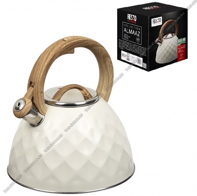 Чайник нерж 2,7л кремов,свист,индукц.капсул.дно,рельефн."ромбы",ручка бакел."дерево/soft-touch"с кнопк.д/открыв,матов,п/у (6)