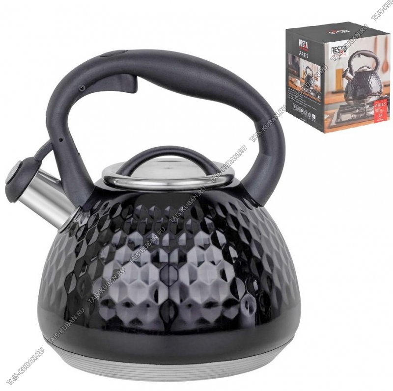 Чайник нерж 2,7л черный,свист,индукц.капсул.дно,рельефн."соты",ручка бакел.черн.с кнопк.д/открыван,матов,п/у (6)