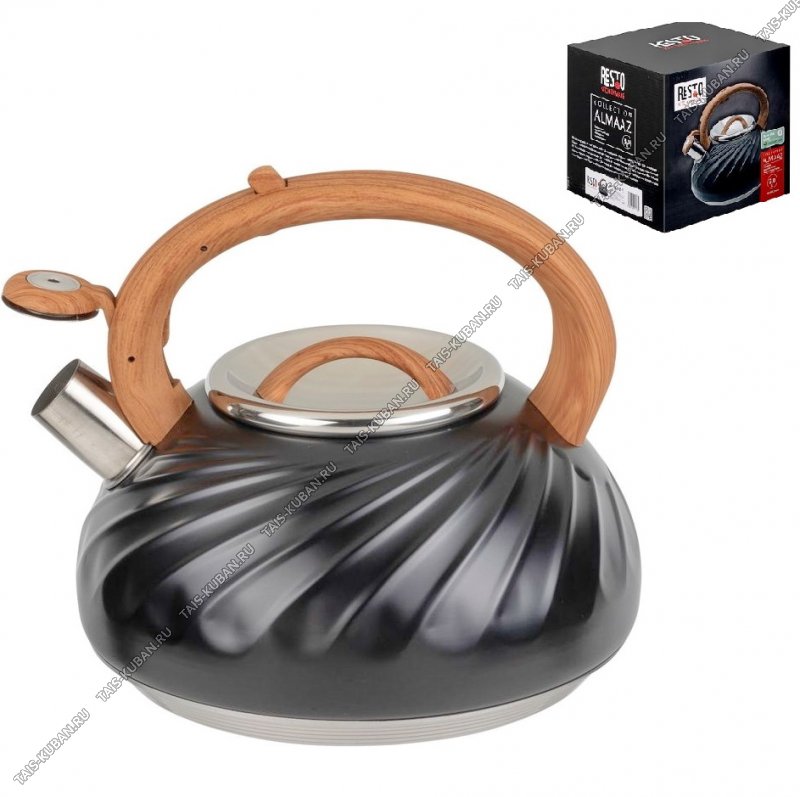 Чайник нерж 3,0л черный,свист,индукц.капсул.дно,рельефн."волны",ручка бакел.черн.с кнопк.д/открыван,матов,п/у (4)