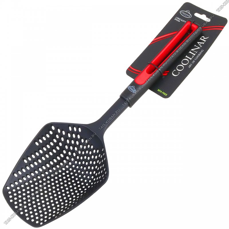 Coolinar Шумовка-дуршлаг L37см,нейлон+пластик,черн/красн (12)