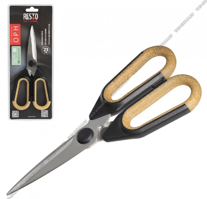 Ножницы кухонные L23х9см,лезв.нерж.сталь 3Cr13,комбин.ручк (дерево+пластик),черн,блистер (12)