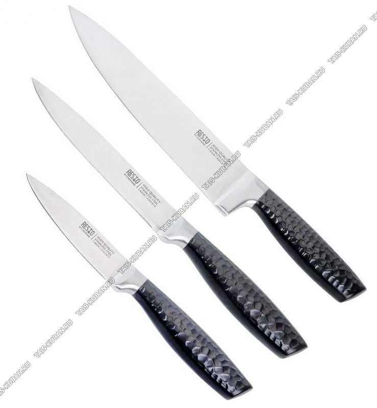 Набор ножей 3предмета "Thor" (поварской 20/универсальный 13/д/овощей 9см) лезвие нержавеющая сталь 3CR13,черные металлические ручки с рельефным покрытием,блистер (6)