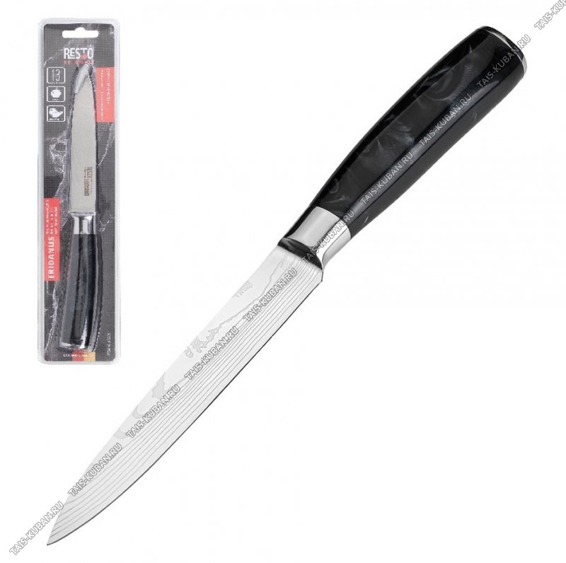 Eridanus Нож универсальный L13см,лезвие гравированное под/дамасскую сталь 5CR15MOV,бакелитовая ручка черный "мрамор",блистер (12)