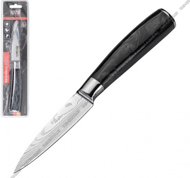 Eridanus Нож д/овощей L9см,лезв гравир.п/дамасскую сталь 5CR15MOV,бакел.руч черн."мрамор",блистер (12)