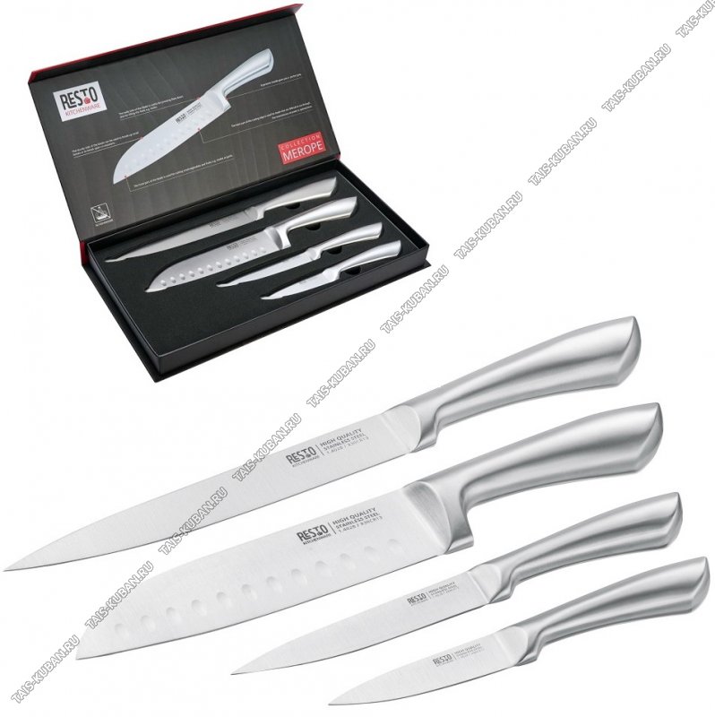 (ножи сантоку L18см/универсальный L13см/д/овощей 9см/д/нарезки L20см),лезвие нержавеющая сталь X30Cr13,литые ручки,Resto