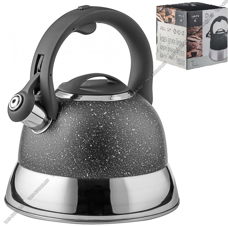 Чайник нержавеющая сталь 2,7л со свистком,черный "гранит" (12)