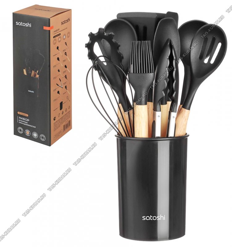 (ложка для спагетти L30,5см/половник L31см/ложка с прорезями L31см/ложка д/салата L31см/кисточка L27см/лопатка кулинарная L31см/щипцы L27см/лопатка с прорезями L31см/ложка гарнирная L31см/лопатка L31см/венчик L24см),бамбук+силикон,подарочная упаковка,Satoshi