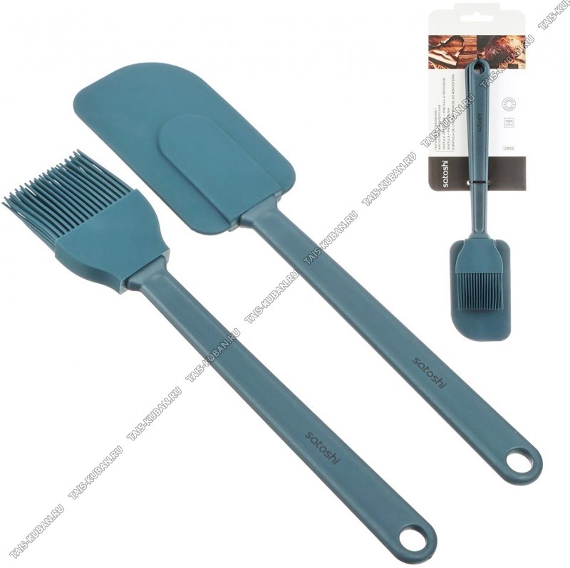 (кисточка кулинарная L20см+лопатка L24см),силикон,пластиковые ручки с подвесом,цвет синий,подвес,Satoshi