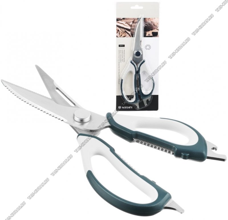 орехокол/лезвие д/чистки и разделки рыбы,птицы/открывалка для бутылок,банок/встроенная овощечистка/лезвие для нарезки овощей и фруктов/шлицевая отвёртка),лезвие нержавеющая сталь,пластиковая ручка,цвет ручки белый/синий,блистер,Satoshi