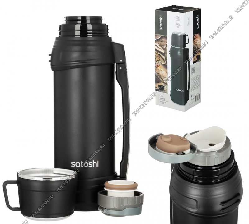 крышка-чашка,ваакумная пробка-поилка,ремешок д/переноса,цвет черный матовый,подарочная упаковка,Satoshi