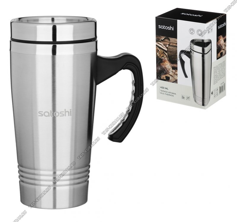 Термокружка (нерж) 0,45л "Satoshi" пластик.крыш.и ручка,матов,п/у (12)