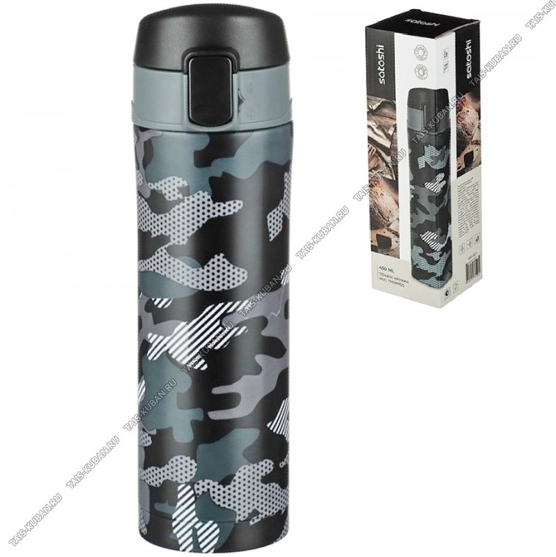 Термокружка (нерж) 0,45л "Satoshi/Камуфляж" серо/черн,крышк-поилка на защелк,п/у (6)