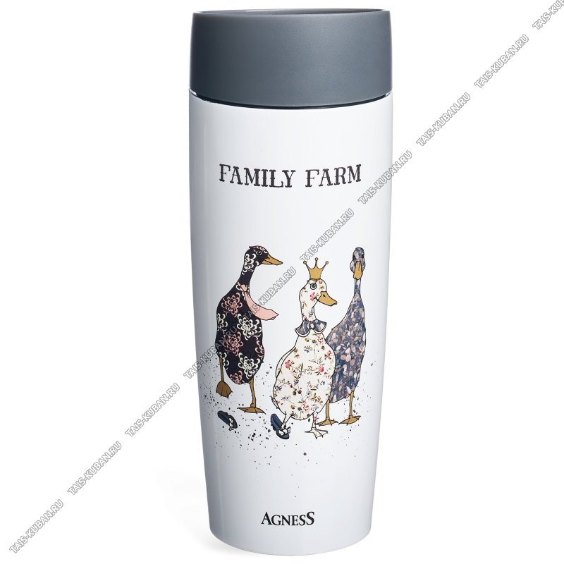 Термокружка (нерж) 0,36л "Agness/Family Farm Гуси" серый/белый