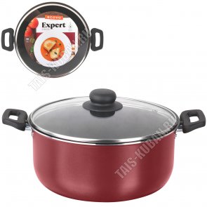 "Expert" Кастрюля 4,5л бордо/внутр.черн,стек.крыш,2пласт.руч,толщ.стен.и дна 1,8мм