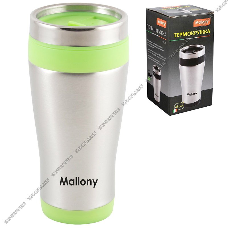 Термокружка (нерж) 0,45л "Mallony/Felicita" зелен.силикон.встав,пласт.крыш,п/у (12)