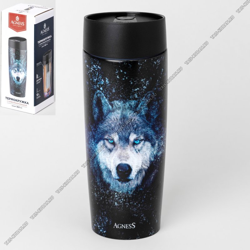Термокружка (нерж) 0,36л "Agness/Волк" черный (6)