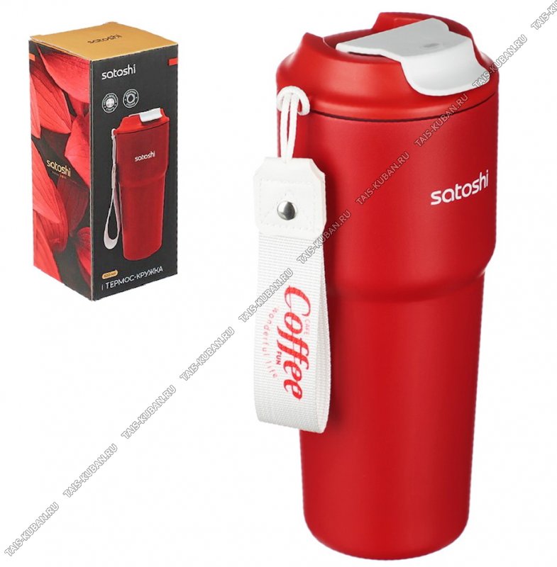Термокружка (нерж) 0,62л "Satoshi/Coffee" красн,герметичн крышк-поилка,тканев ремешок,пласт.корпус,сталь 18/10,п/у (12)