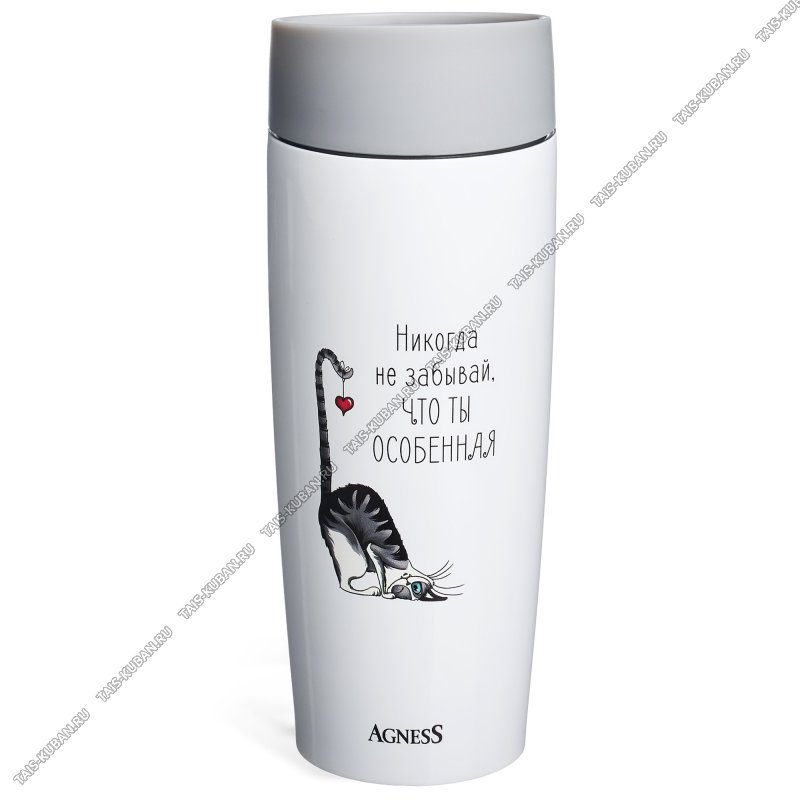 Термокружка (нерж) 0,36л "Agness/Никогда не забывай что ты ОСОБЕННАЯ" серая/белая