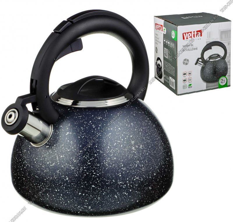 Чайник нерж 2,5л "гранит" черный,свист,индукц.капсул.дно,ручка бакел.черн. с кнопк.д/открыв,матов,п/у (12)