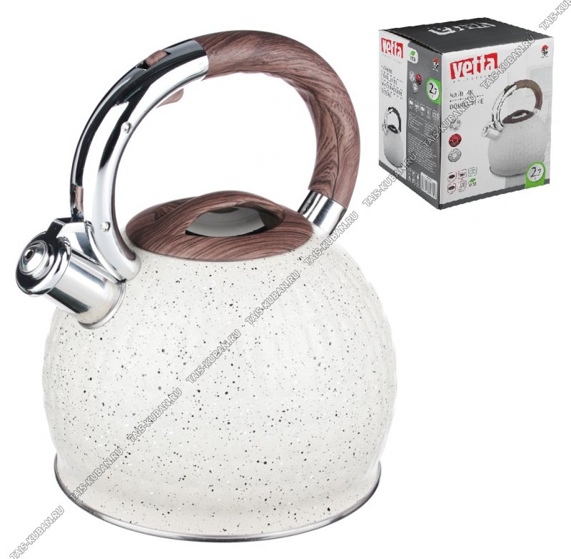 Чайник нерж 2,7л "гранит" серо-белый,свист,индукц.капсул.дно,ручка металл/бакел."дерево/soft-touch" с кнопк.д/открыв,матов,п/у (12)
