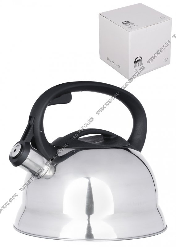 Чайник нерж 2,5л свист,индукц.дно,ручка бакел.черн.с кнопк.д/открыв,зеркал.полир,п/у (6)