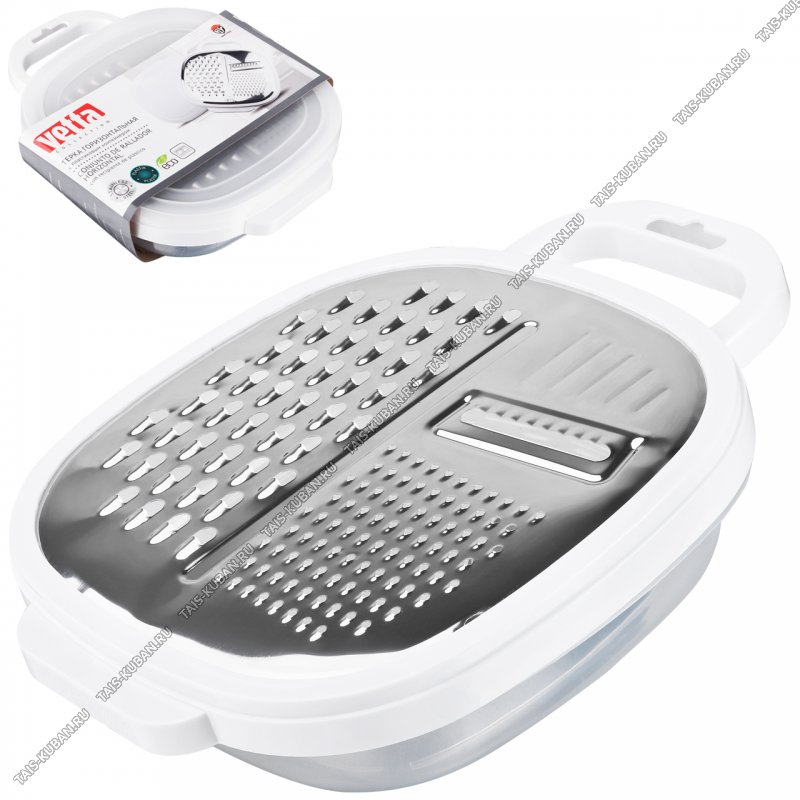 Терка горизонтальная с контейнером 25х19х6см,нержавеющая сталь+пластик,белый (6)